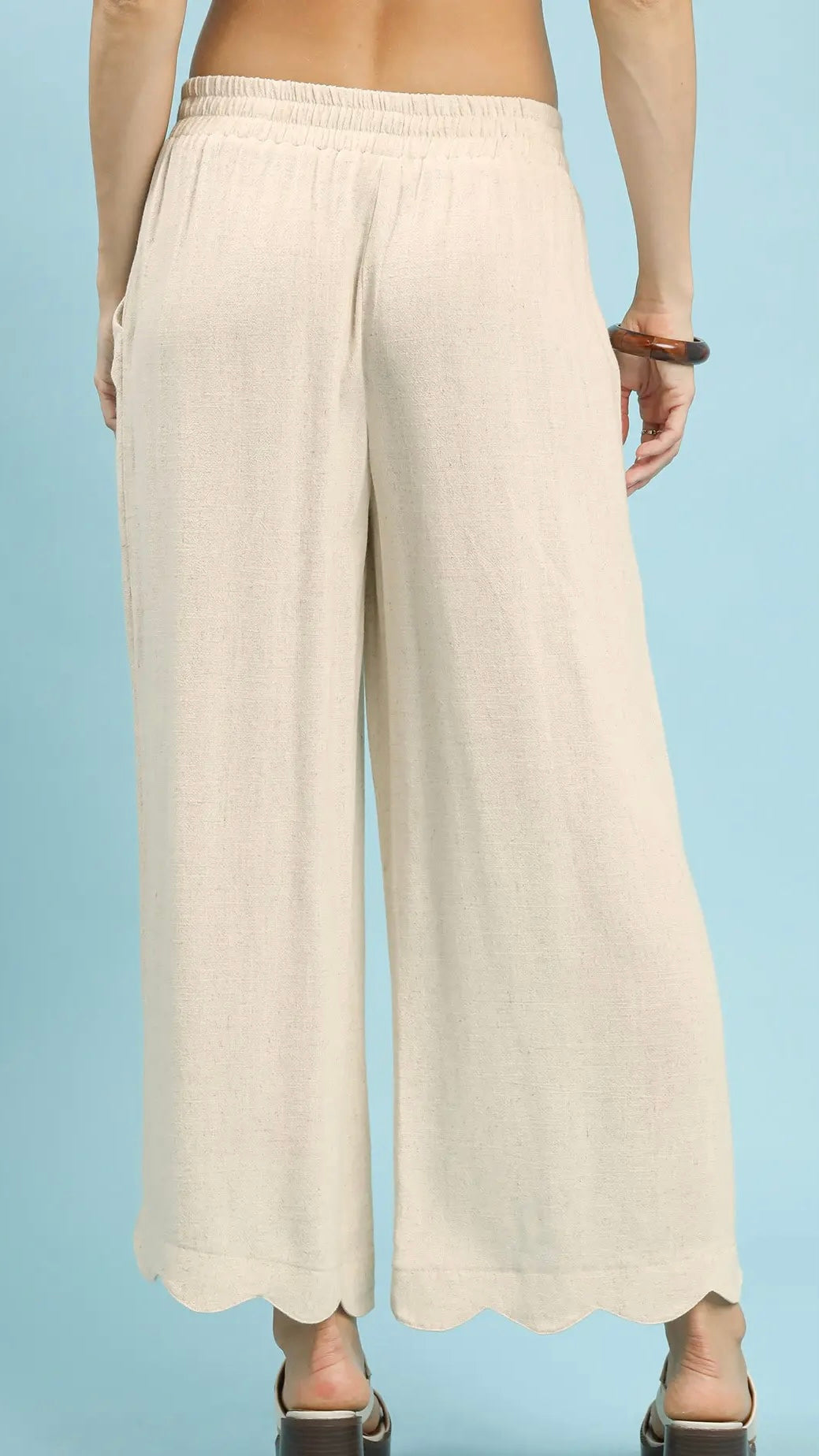 Details: Elastic Waistband (stretch) / Slash Pockets / Scallop Hem