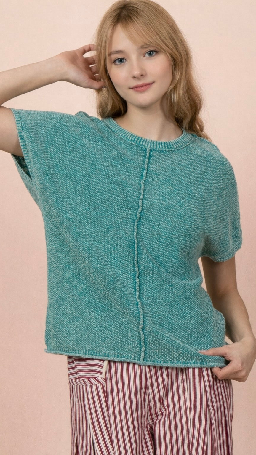 Details:   Mineral Washed / Dolman Sleeve / Round Neck / Center Front + Back Seam