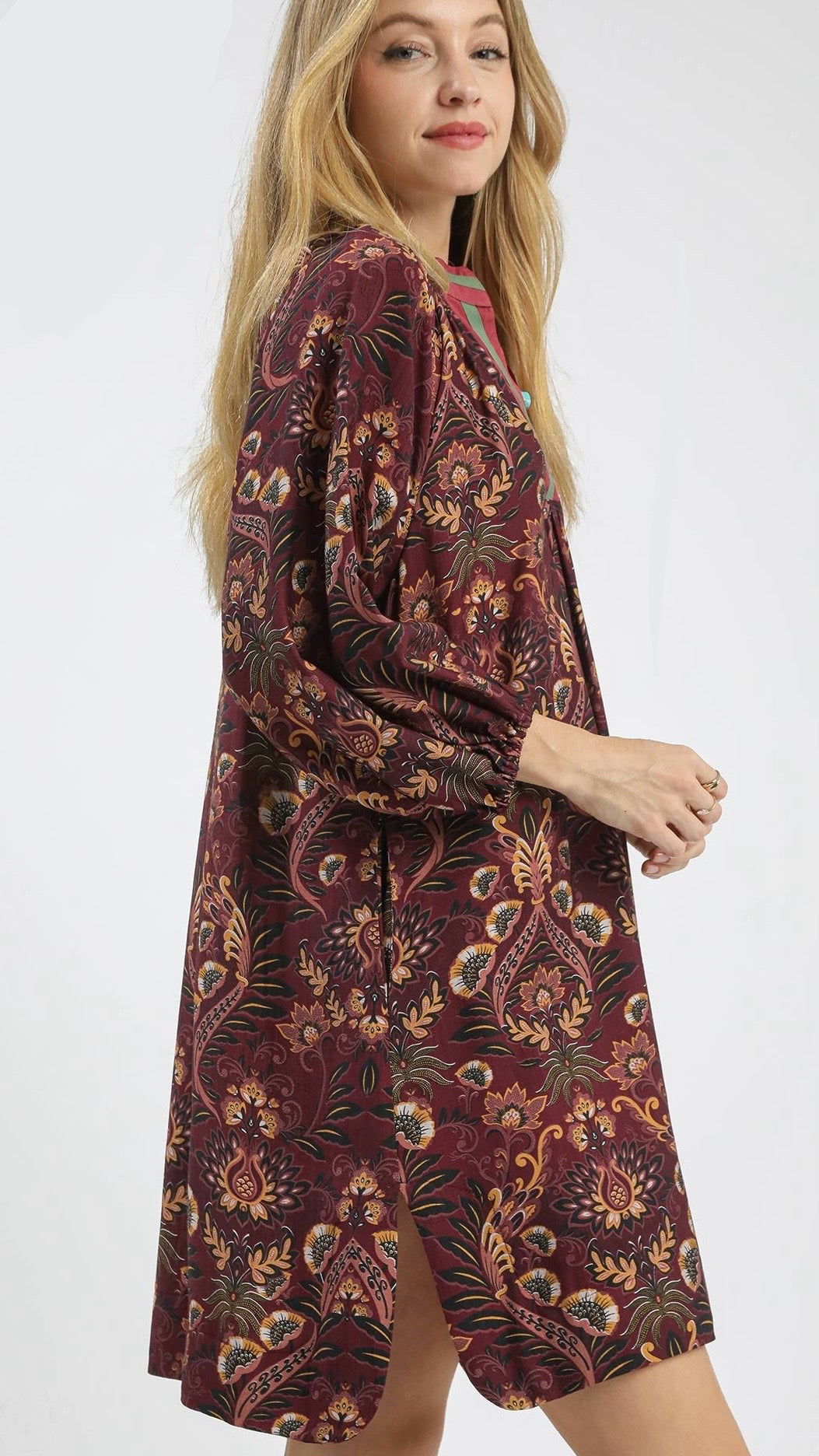 Details: Contrast Split Neck / Elastic Cuff Bubble Sleeve / Sideseam Pockets / Curved Split Sideseam