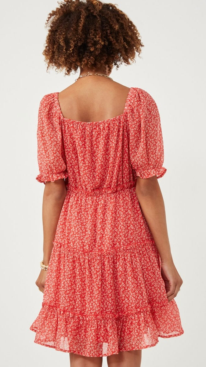 Square Neck Floral Smocked Bodice Dress