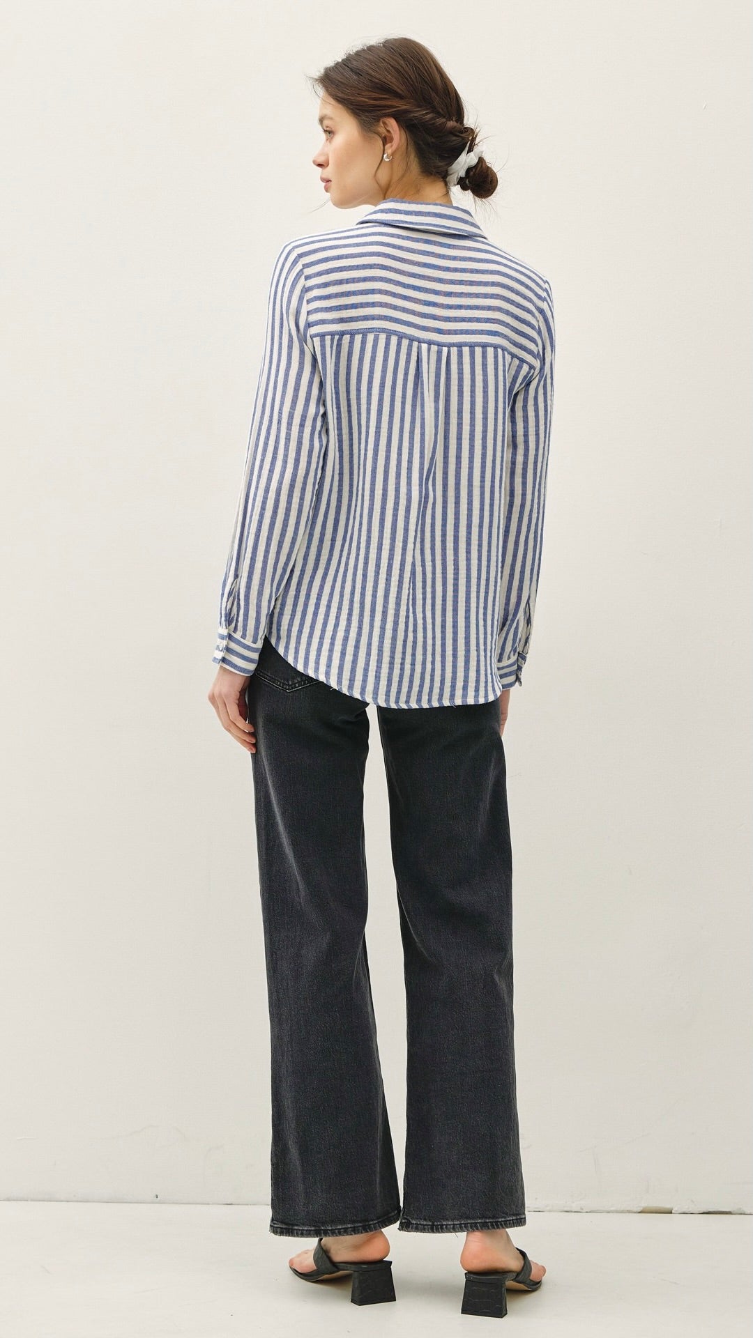 Details: Button Front / Collar / Double Chest Pockets / Curved Hem / Button Cuff