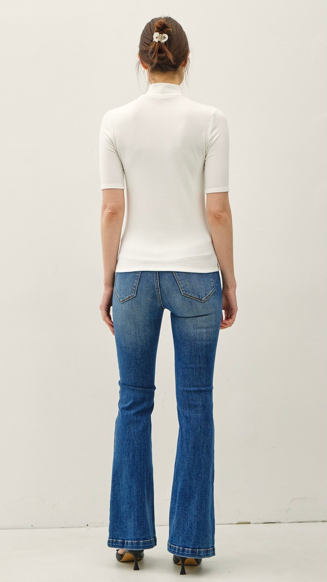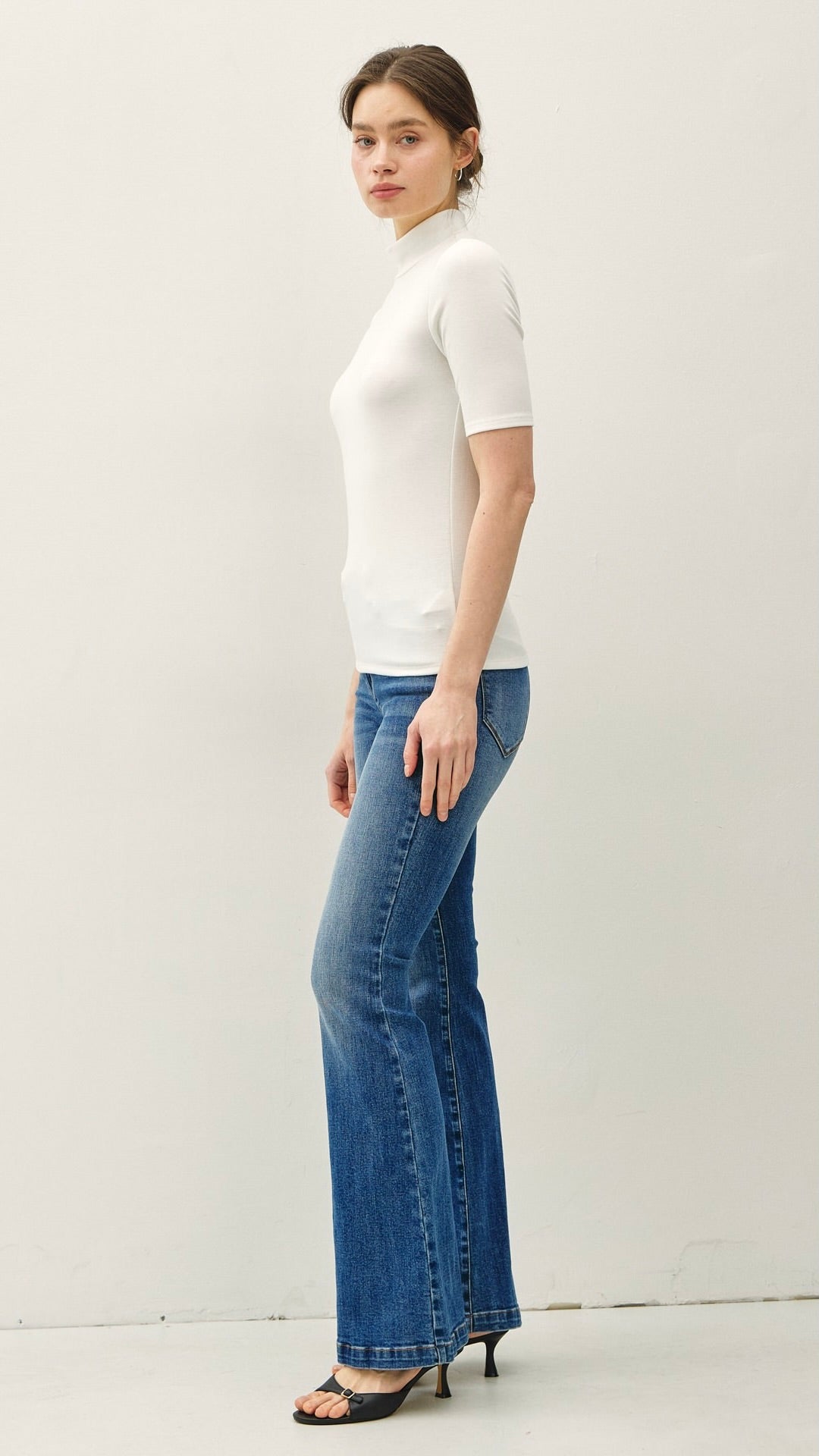 Details:  Mock Neck / Short Sleeve / Fitted Style