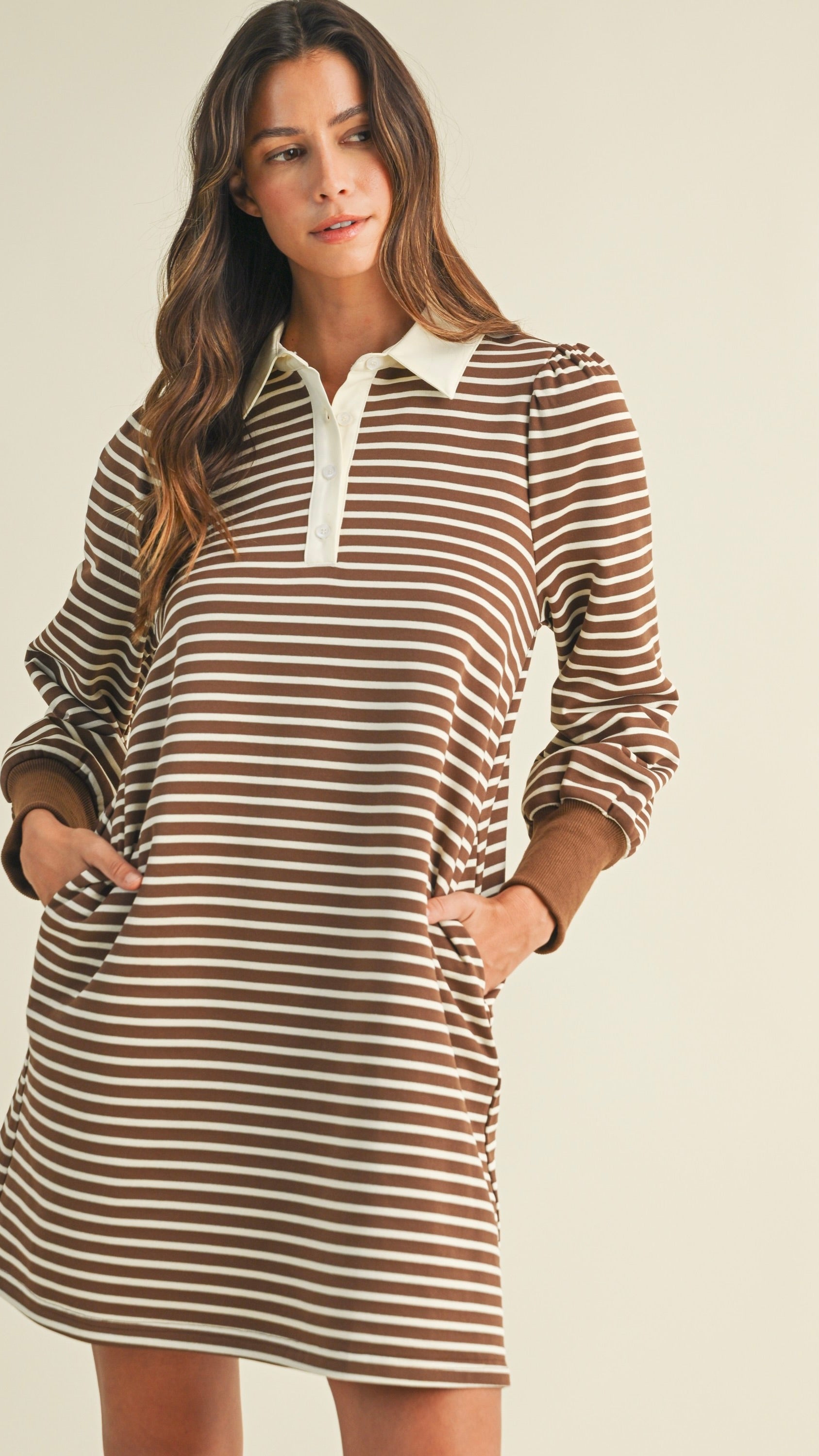 Stripe French Terry Polo Dress
