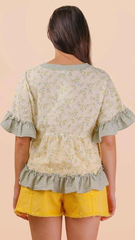 Floral Stripe Ruffle Babydoll Top