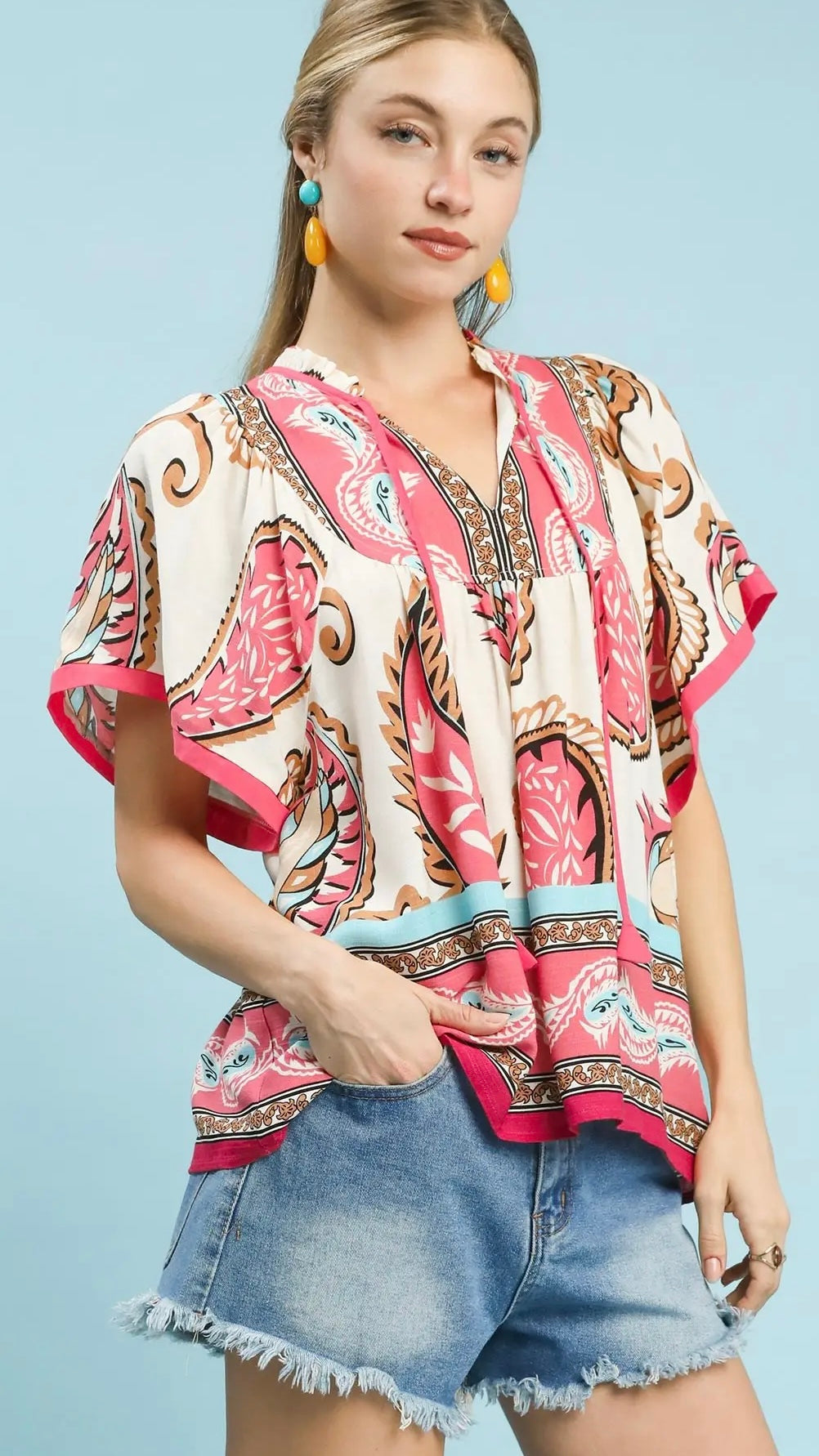 Paisley Print Rayon Babydoll Top