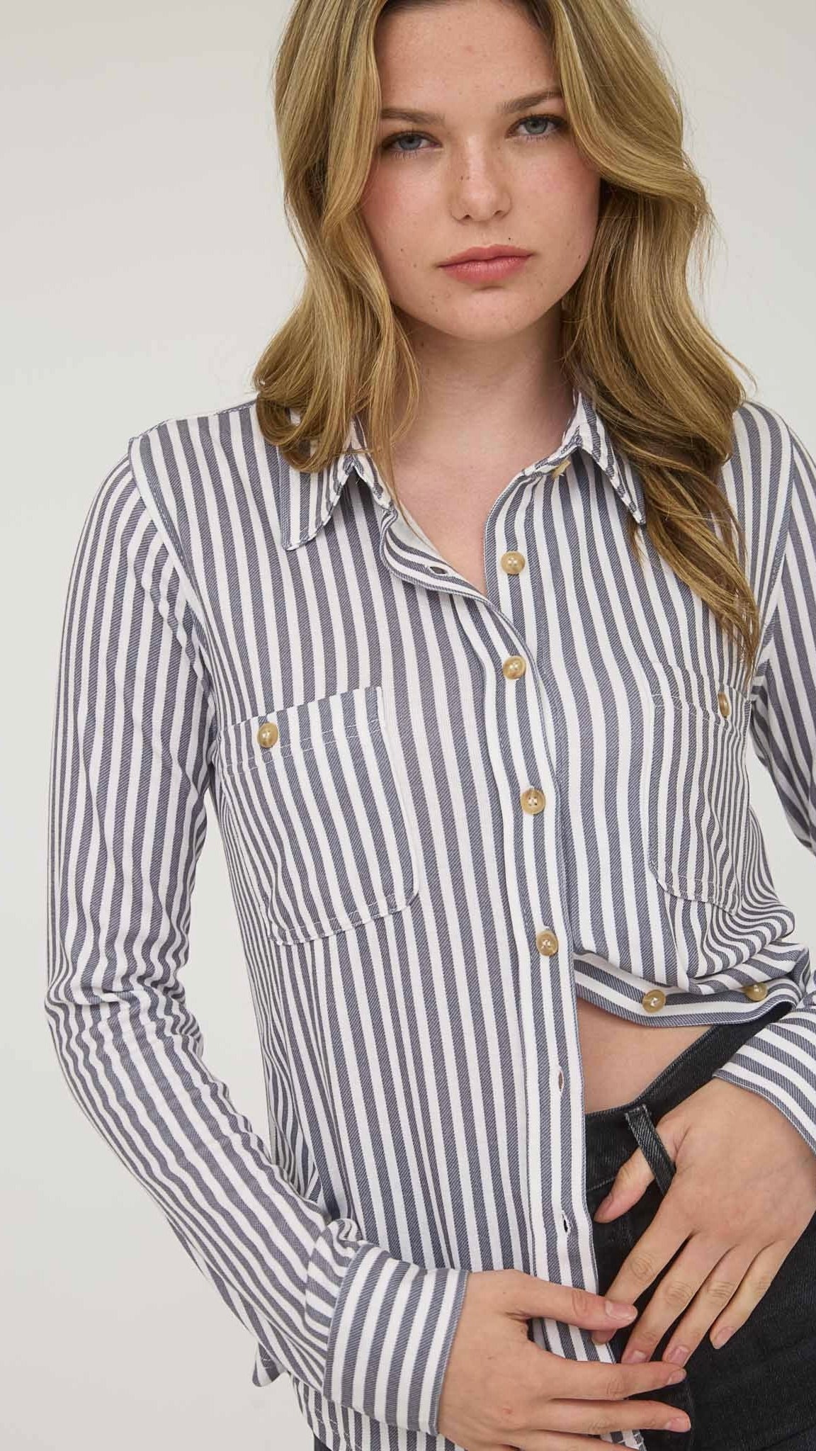 Stripe Knit Button Down Top