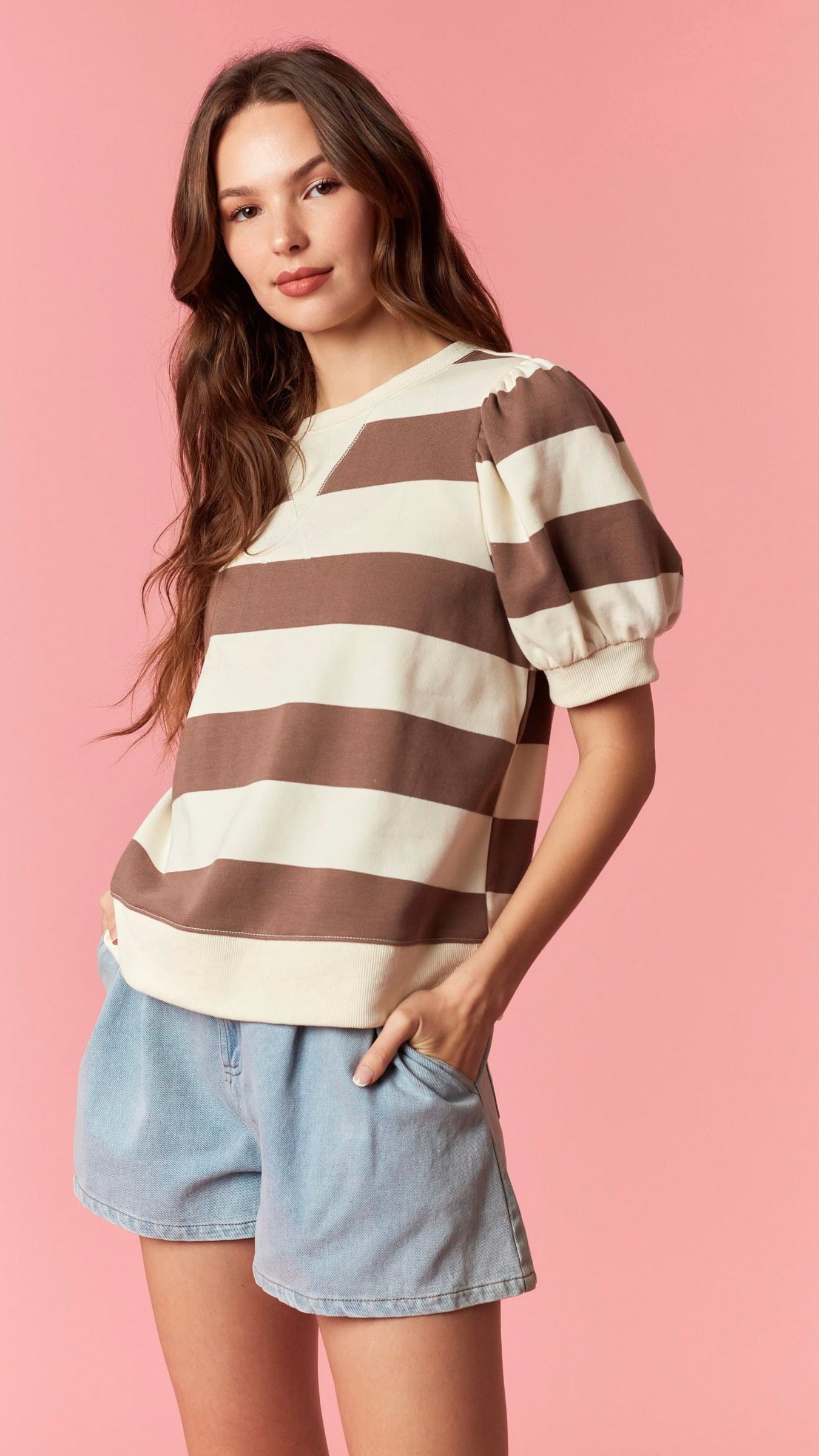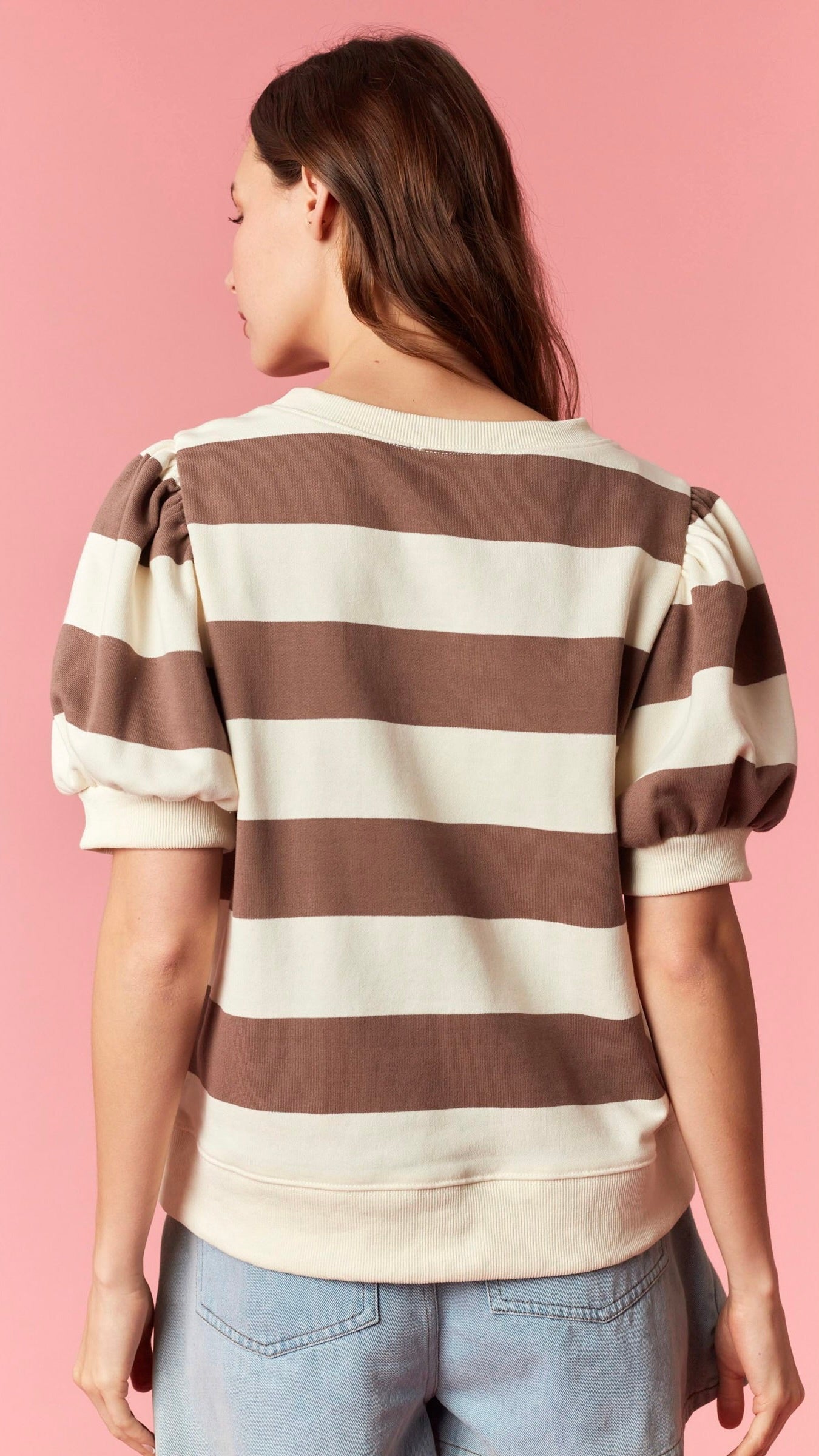 Details: Puff Short Sleeve / Ribbed Neck, Hem+Cuff / V-Trim Neckline